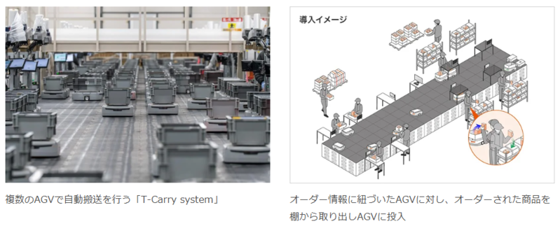 今回提供開始する2つの「モデル」は、Nexa Wareのメインソリューションである、汎用性の高いAGVを活用した「T-Carry system」*¹をベースに構成。お客さまの「ピッキング工程」「仕分け工程」での運用をスムーズに開始できるモデルです。さらに、業務ニーズに応じてオプション*²を追加でき、お客さまの運用に合わせた柔軟な提案を可能としています。