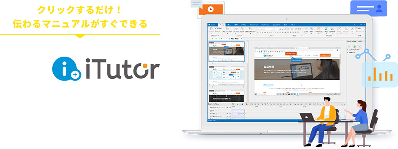 BluePortの「iTutor」は、PC操作を自動でキャプチャし、作業のマニュアルや動画、eラーニングコンテンツを簡単に作成・編集できるツールだ。